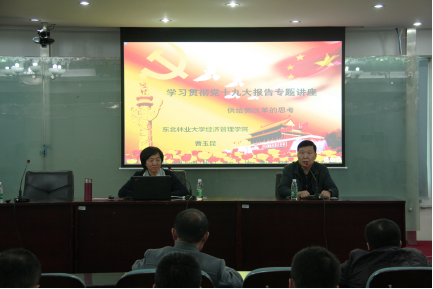11月1日下午2时30分,后勤服务总公司和资产经营公司在综合办公楼11楼会议室联合举办宣讲报告会,经济管理学院教授曹玉昆作了题为《供给侧改革的思考》的报告。后勤服务总公司全体党员、骨干队伍员工和资产经营公司全体职工参加了报告会。报告会由后勤服务总公司党总支书记尹承增主持。