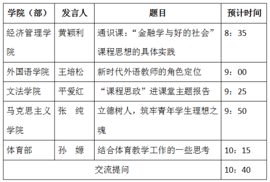 本次教师论坛是学校本科教育思想大讨论的内容之一,主要聚焦以下几方面的内容:如何更好地学习宣传贯彻全国教育大会精神;如何落实以本为本和“四个回归”的精神实质;如何聚焦学生为中心,加强学生理想信念教育;如何开展“课程思政”教学改革;进一步梳理本科教育存在的突出问题,如何完善一流人才的培养体系;如何深化人才培养模式改革,进行专业改造、升级和优化结构,建设一流本科专业;如何探讨和完善现代信息技术与教育教学的深度融合,深化教学方法和考试方法改革,创建一流本科课堂;如何进一步强化师德师风建设,提升教师教书育人的责任意识和质量意识,形成一流教学团队。